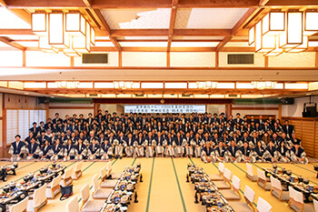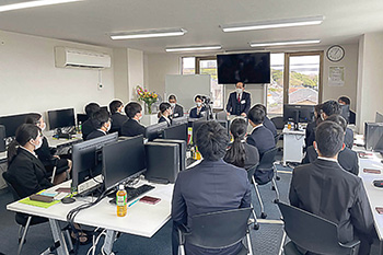 コロナ禍でしたが、感染対策をしっかり行い、全員集まっての集合研修を開催しました。同期同士、交流を深め、協力し合いながら業務に関わる知識や実践的なスキルを学びます。